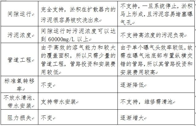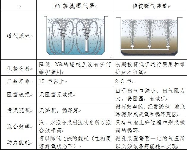 2.4 MY旋流曝氣器與傳統(tǒng)曝氣裝置的比較